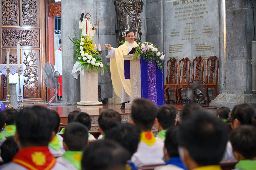 Đó là lời nhấn mạnh của linh mục Giuse Nguyễn Đức Trí, chánh xứ Tân Châu, khi ngài chủ tế Thánh lễ mừng kính Thánh Phanxicô Xaviê, bổn mạng của Đoàn Thiếu nhi Thánh Thể (TNTT) Phanxicô Xaviê, giáo xứ Vĩnh Hòa, cử hành lúc 17g30 thứ Tư, ngày 03-12-2025, tại Nhà thờ đá Vĩnh Hòa.
