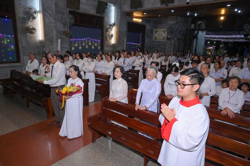 Trước Thánh lễ, lúc 17g00, các hội viên quy tụ trong ngôi thánh đường cùng nhau lần hạt kinh Mân côi qua năm sự vui.