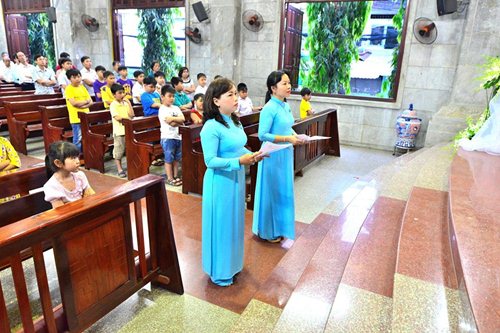 Đầu lễ, cha chủ tế chủ sự nghi thức làm phép tượng ảnh Thánh Nữ Maria ngay trên cung thánh, và mời gọi cộng đoàn cầu nguyện cho các thành viên trong ca đoàn luôn biết sống khiêm nhường trước mặt Đức Maria, hy sinh thời gian, công sức đem lời ca tiếng hát của mình cùng nhau làm vinh Danh Chúa: “Hát hay là cầu nguyện hai lần”.