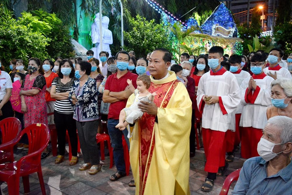 Linh mục (Lm) Gioakim Lê Hậu Hán - Chánh xứ Vĩnh Hòa đã chia sẻ như trên cho các em thiếu nhi và cộng đoàn trong thánh lễ Vọng Giáng sinh diễn ra lúc 18g thứ Năm, ngày 24.12.2020, do ngài chủ sự.